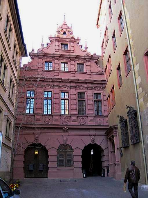 烏茲堡Wurzburg市政廳Rathaus原本是主教辦公的地方,建於14世紀,後來經不斷的擴建,而成現今的模樣。(2008.3.29)