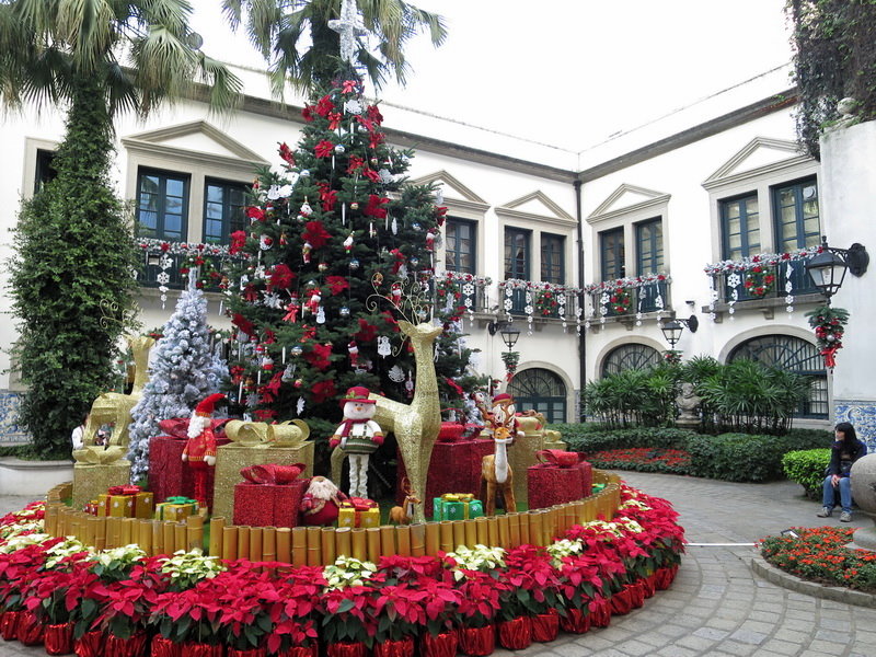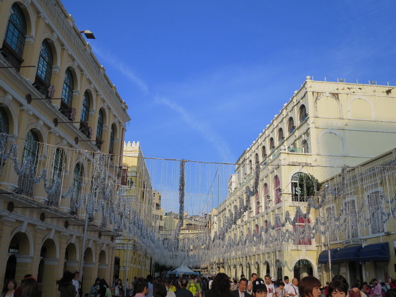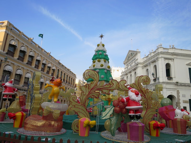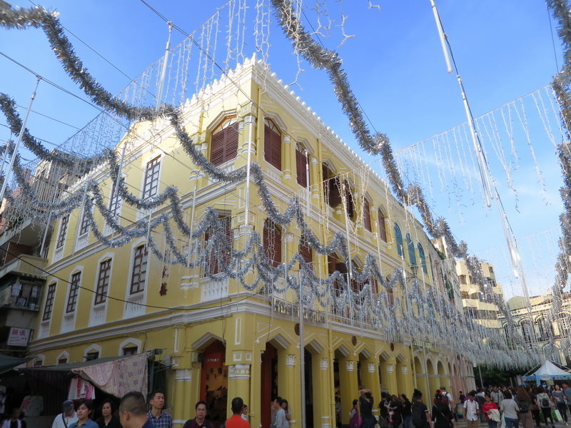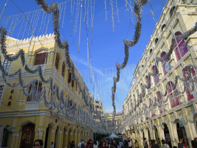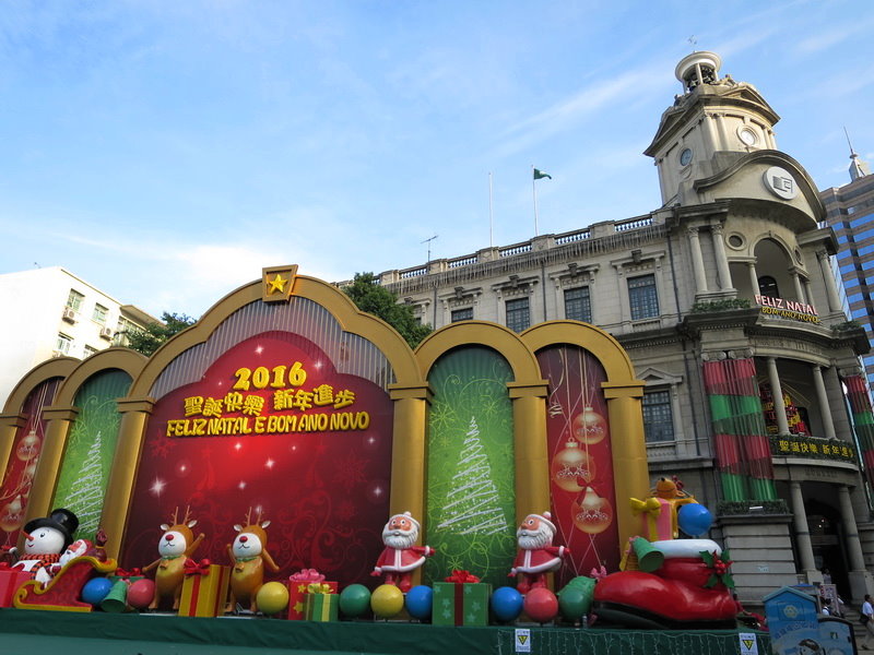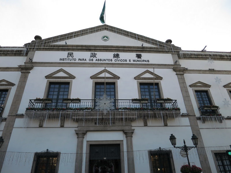 民政總署大樓前面隔著大馬路就是議事亭前地,議事亭前地平時非常熱鬧,有聖誕節裝飾藝術更是熱鬧!