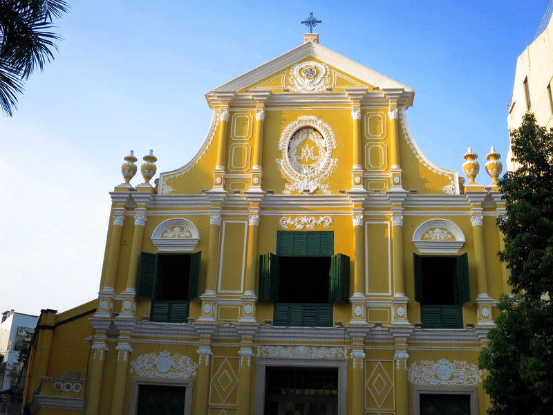 以巴洛克風格建築而成的玫瑰堂,淡黃色外牆與綠色門窗形成強烈對比,近年來經常充滿悅耳樂聲。