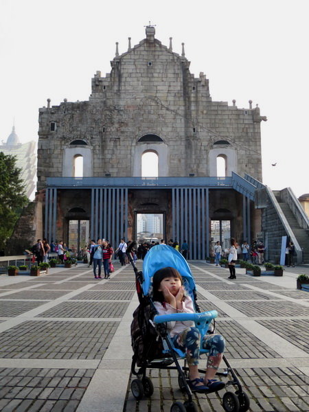 大三巴後面~原本是一整棟的建築,後來卻被火燒到只剩下一面牆,真是太神奇囉!