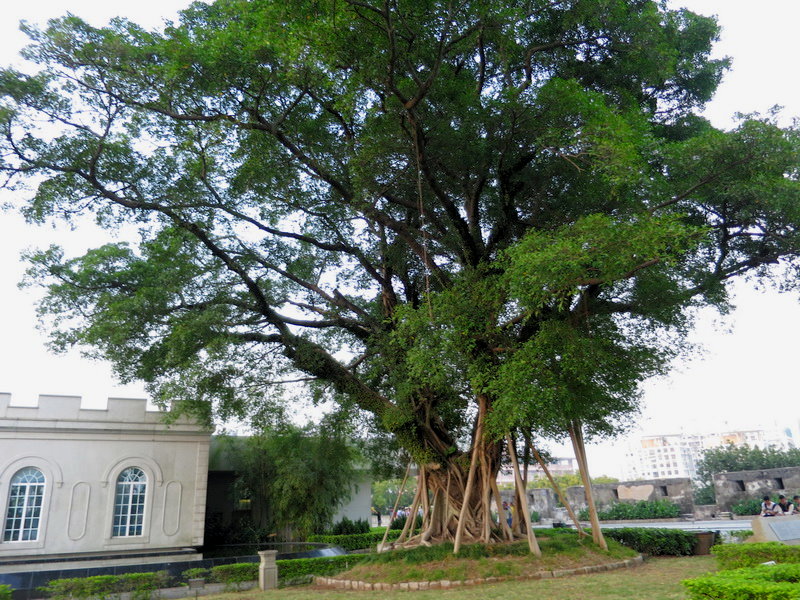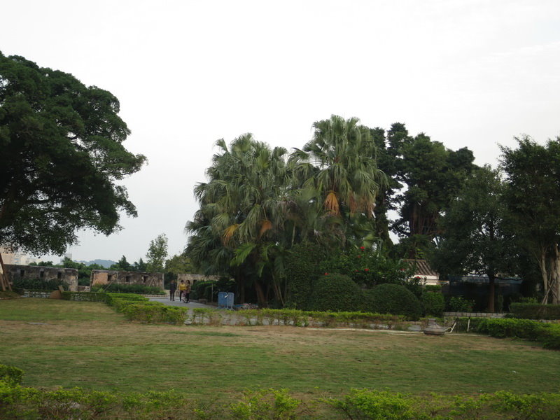 除了銅炮外便沒有其他的軍事武器,而是一大片綠意盎然的草地,平台旁林立著高壯的樹木,綠葉成蔭為前來砲台參觀的人提供陰涼處乘涼。