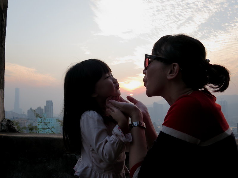 母女要親吻夕陽,可惜shine眼睛不好…..