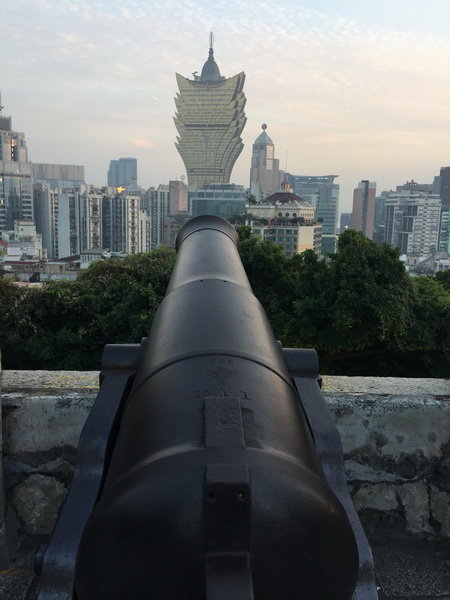大炮台擁有絕佳的視野,站在在大炮台上俯覽,便可將澳門全景盡收眼裏,一覽無遺,也可以遠眺中國大陸的珠江口及拱北一帶的風光;