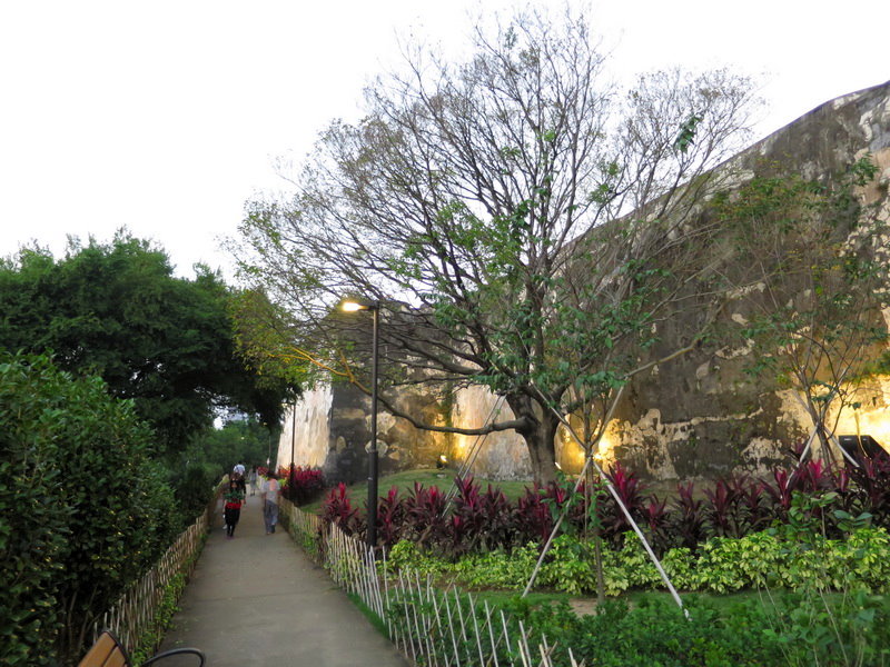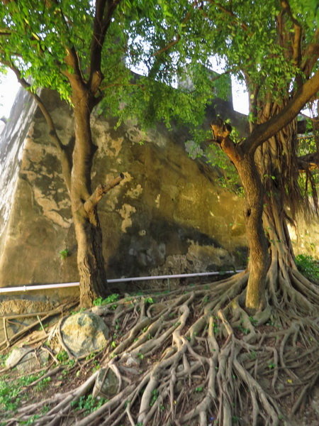 大炮台是由堅硬的石塊摻雜貝殼粉堆砌出固若金湯的城牆,旅客們必須通過蜿蜒的步道才能到達城上。