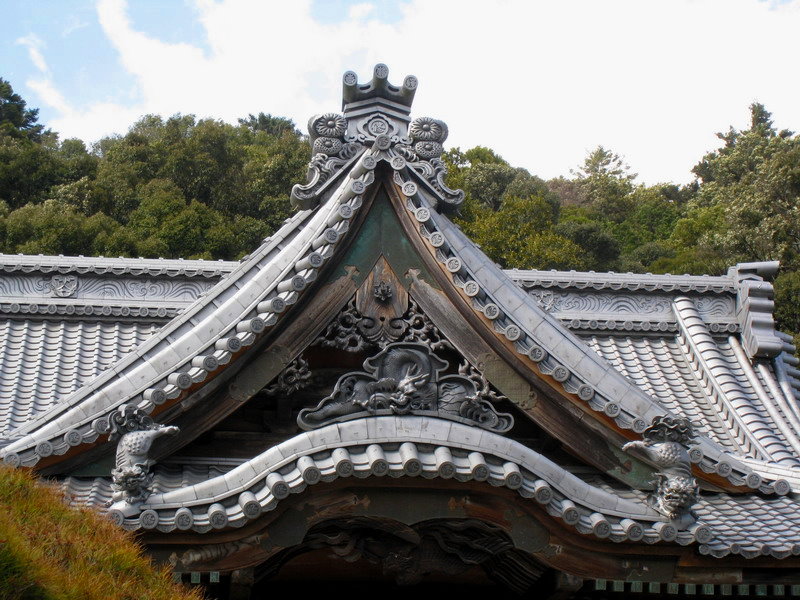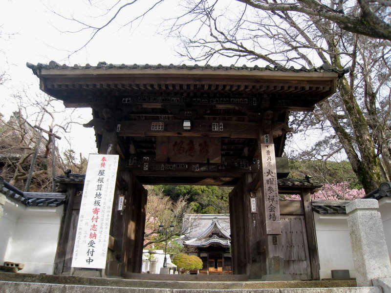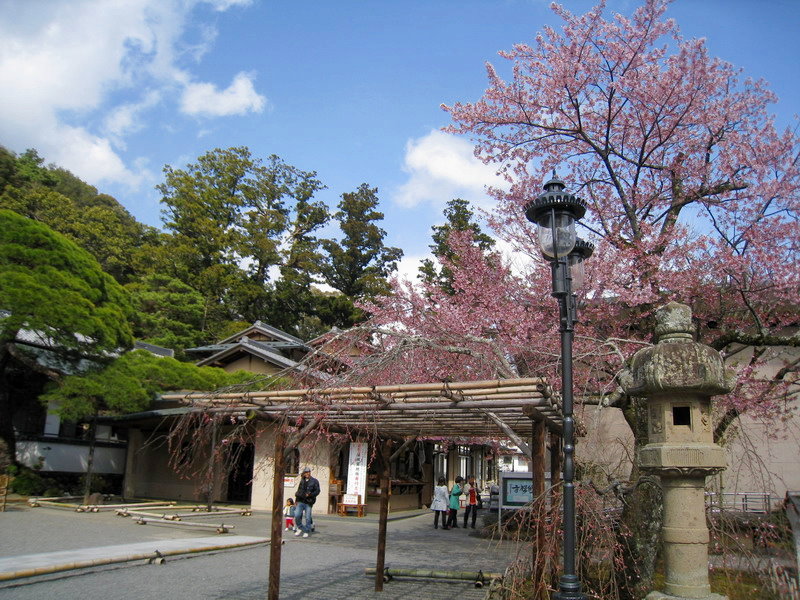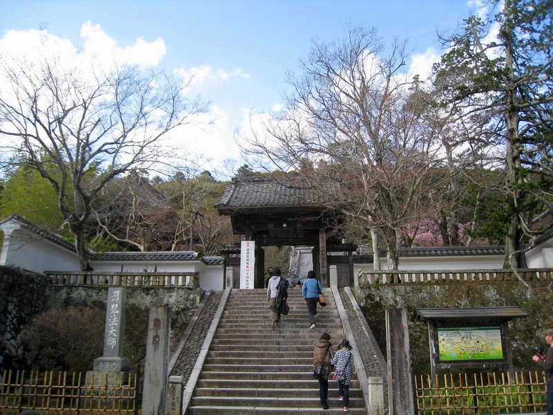 修禪寺的門口,不像是中國寺廟漆著紅紅的顏色,林立的樹木參著綠蔭,搭配木頭原始的顏色,樸素至極。