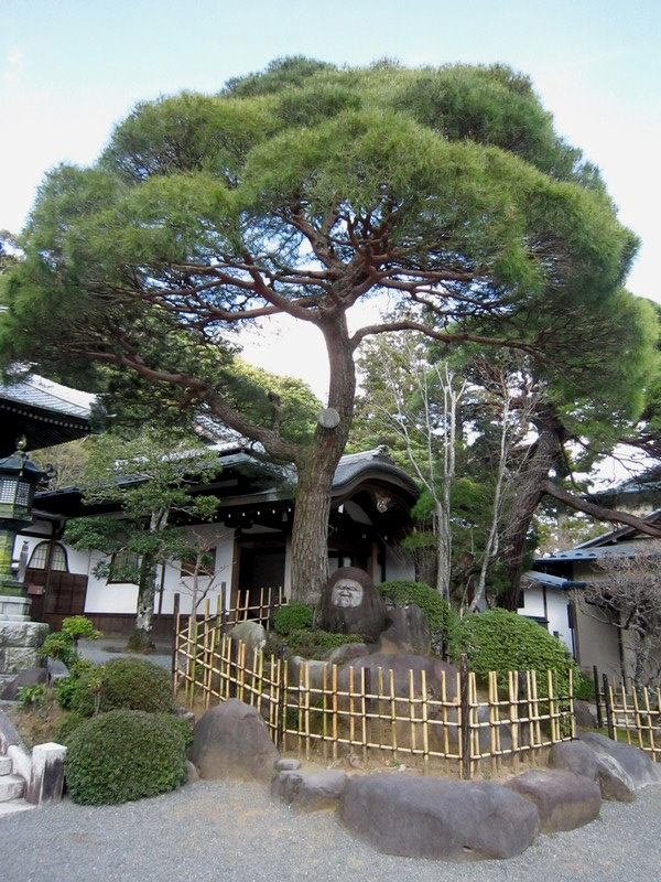 寺前入口處旁的樹木下,有著一尊用石頭刻出的達摩像。