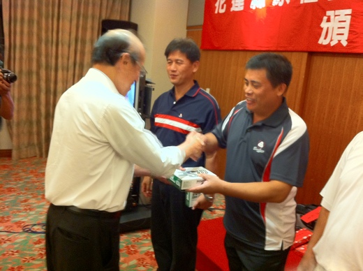 晚間,原安排晚間6時30分用餐,不知道是中國人的特性還是阿美族的用餐禮儀,等了有一小時吧,五桌才像個樣到了8成,開始進行用餐及頒獎儀式,但不管如何,承辦單位理事長林博學長非常客氣,逐一介紹了遠自屏東、台中及桃園的球友,也分別致贈了紀念品,實在感激,用餐過程亦非常熱情。