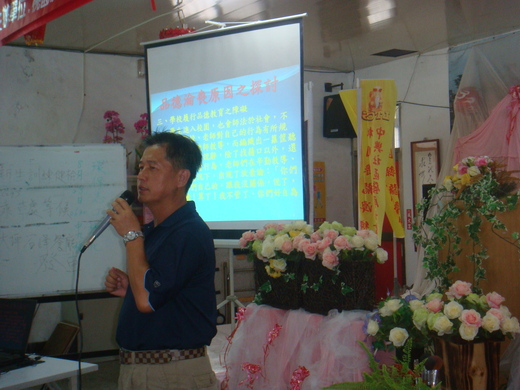 桃園縣原住民族袍澤發展協會依桃園縣政府核定辦理100年度原住民社會教育活動課程,中午1200時整理事長、副理事長、總幹事暨相關工作人員均蒞臨會場實施場佈,1300時首先由理事長周星文引言致歡迎詞,並且從1310時至1400時開始第一堂課:如何深化品德教育,周理事長將社會現況中有關品德淪喪原因之探討暨改善方式,均以非常詳細方式傳授予現場學員;第二堂課1410至1500時止,由副理事長胡智盛針對親職教育-人生歷程規劃課程實施授課,胡副理事長以自己的人生歷程做為題材,傳授現場學員人生要有目標,才能築夢踏實。第三、四堂課是由靜宜大學法律系陳申鈞同學針對原住民常面臨法律問題,一一用案例來向學員說明。第五、六堂課是由總幹事陳文勝針對原住民常面臨的健康問題作報告,另外,也敍述了健康保養之道。第七堂課就由陳美蓮老師,針對專業課程個人基礎化粧技巧整體造型實施教學。