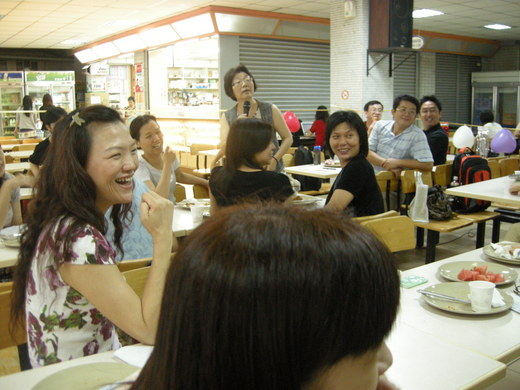 中午轉到文園餐廳聚餐,心理系主任夏林清也到場參與,他們一邊吃飯,一邊由另一位聯絡人劉清隆主持節目,重新介紹同學,並請他們起身自我簡介及分享近況,還必須附加介紹有幾個孩子、孩子幾歲等,就像一個大家庭一般。