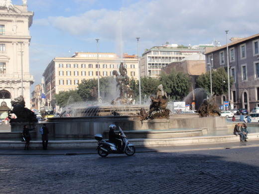 附近還有歌劇院及Roma Mitsukoshi(是屬於日系的百貨公司)有大家熟悉的名牌商店,但價格很高,只看看就走了,之後搭地下鐵A線到西班牙廣場(Piazza di Spagna)本是17世紀時西班牙大使館,廣場前教堂的階梯稱西班牙階梯,經常有世界各地來的觀光客來此,而階梯前的"破船噴水"也很著名,是模仿台伯和搬運葡萄酒的老船,再繼續早到萬神殿(Pantheon)位官很平凡,但內部有米開朗基羅的巨大圓頂建築很壯觀,但因我們到的時間有彌撒,所以無法入內參觀,只有在外頭照相.