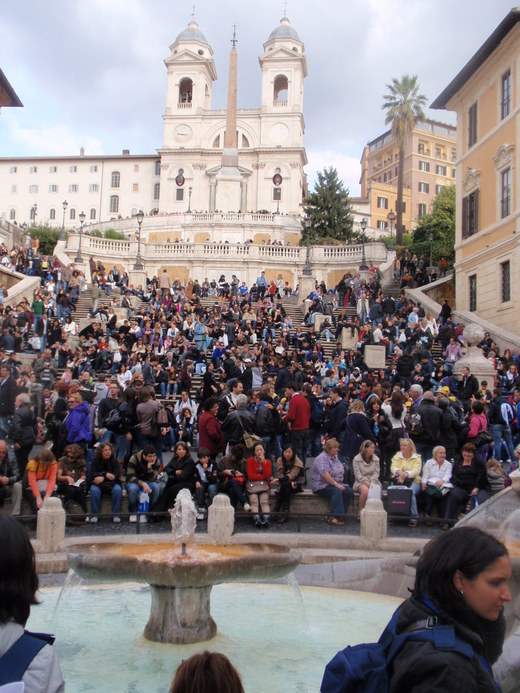 薰衣草這張廣場照片拍得好極了 , 教堂 , 椰棗樹, 圓形園柵, 馬蹄型階梯上人潮和噴泉全照下來了, 看了就讓人開心 . - 14樓. Gioia2010/12/11 00:17Roma!