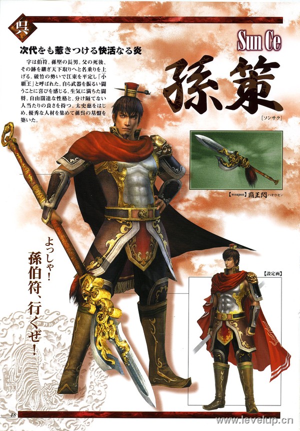 到了五代,孫策使用的武器也改變了,還沒玩過五代所以不清楚是否仍那麼好用,不過,至少這一代的孫策神情更有魄力,我想,這應該是光榮公司給他的一份史實相符吧!