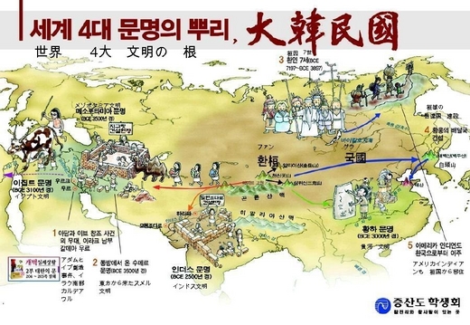 更甚者,前陣子還說世界四大文明起源都是從朝鮮而來,還彷彿一切都是真的畫了一張所謂的朝鮮人成就世界四大古代文明的流程地圖,只要是對世界史有那麼一丁點認知的人,大概都會被這張所謂的「朝鮮是四大古文明起源圖」給笑到翻掉吧!