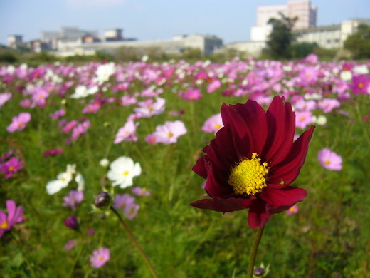 非常訝異能在這裡發現一片波斯菊海,精神一振,嘴角也重新展起笑顏,有風,應該是直接吹拂到心裡面去的吧。