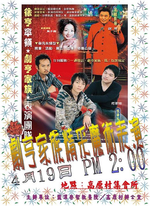 4月19日,下午2點,高原村集會所,「劇亨家族」將再度來龍潭進行表演,歡迎各位朋友能夠蒞臨欣賞哦!!