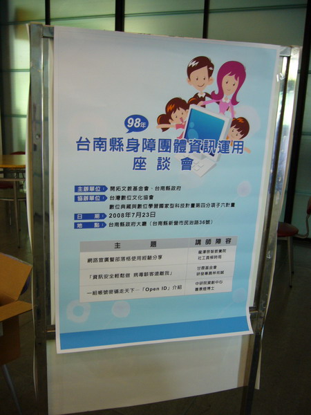 與會前,「開拓」伶光小姐就有與諸位講師溝通討論座談會的相關內容,察覺台南地區對於網路應用的宣導仍有很大的拓展空間,基本上,這次南下應該可以帶給台南縣市的身障團體不少資訊,以提升自身單位的網路應用能力,只是,仍有部分單位基於「沒有部落格、所以不用去」的想法,錯失此次分享機會,甚為可惜。