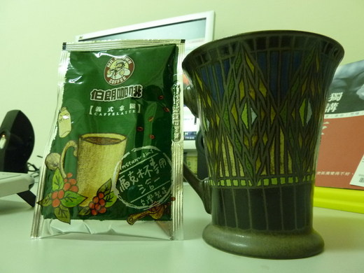 為了慶祝自己的網誌入圍,還特別用許久未曾使用的漂亮咖啡杯泡了杯咖啡,看著杯面不停旋轉的咖啡泡沫,啊、我醉了啦……