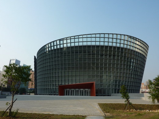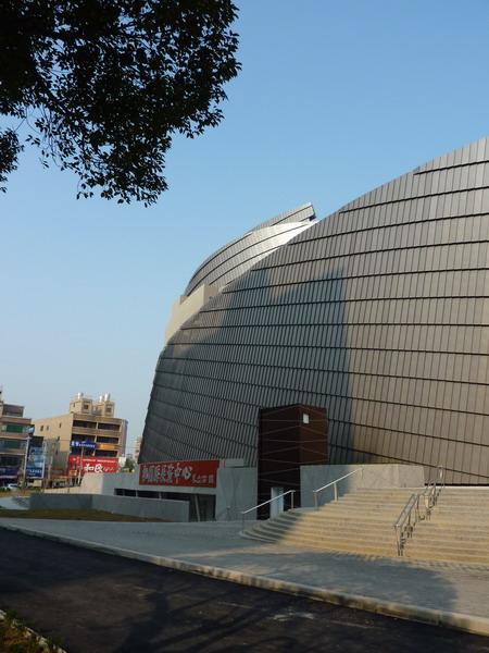 於是,朱立倫前縣長在卸任前核定建設「桃園縣展演中心」,並於十二月十九日落成剪綵啟用,登上許多新聞媒體,蔚為佳話,最特別的莫過於展演中心那別緻的外觀,據說是某知名建築設計師的傑作,給這座建築增添不少光彩。
