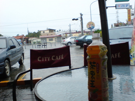 西南氣流引進的大雨,在這座山城更加明顯,才從駕駛座跨出到三秒鐘距離外的屋簷下,肩頭已濕一片,隨意吸嚕個便當之後,坐在店外涼椅喝茶聽雨,三分鐘之後,給她電話。那一頭女歌手唱的歌,她果然接了起來,然後笑聲連連。
