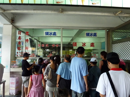 光復糖廠賣冰,凱說這是很久以來便有的措施,到了夏天冰淇淋的銷量更是嚇嚇叫,尤其看到一堆遊客站在帶有古意的販售窗口前買票取冰,仍是蠻特別的畫面。
