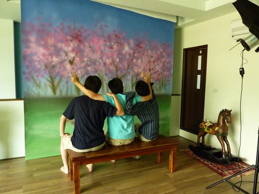 他們兩個都有在接觸特殊攝影(多是cosplay),對免費沙龍攝影的機會十分垂涎,本來昨晚就要拍了,但卡在我們要出去唱歌而延宕,今天十一點以前要退房,說什麼也不能讓機會就此錯失,於是早餐過後連忙跟著簡大哥來到四樓,準備開鏡。