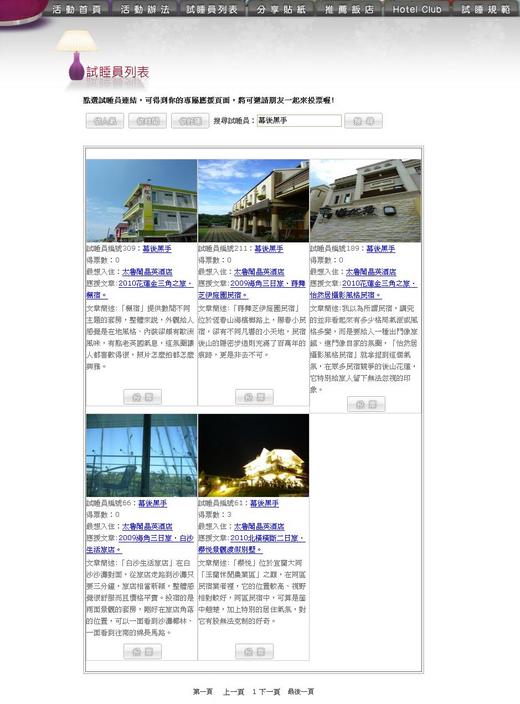 總之,這個初選投票時間從現在開始一直到十月三十一日,每天每人可以投票一次,應該說,每個IP每天可以投票一次,投票的人還可以獲得精美投票獎哦!雖然,我看我的起步已經晚很多了,要擠到前面去大概難度很高,但仍希望大家幫忙推薦投票、也幫忙宣傳一下,如果有機會擠入那十三個實習試睡員名單的話,我會盡力拍出好照片回來犒賞(?)大家的!