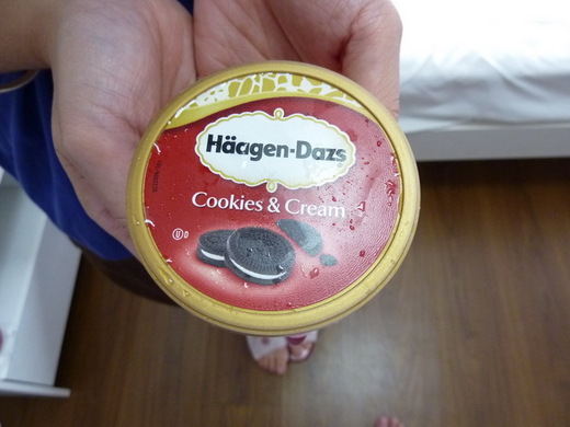 在妳看了兩張KITTY卡片後,我到樓下小七買了一小盒的哈根達斯,光憑卡片畢竟太單調了點,喜愛給妳小小趣味的我,最後還是讓妳吃了一嘴甜。