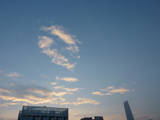 之前的妳是個上班族,每天早出晚歸,早上常常鬧鐘叫不醒;現在的妳正在轉職中,終於可以早起卻因為習慣了晚睡而更晚起床,漂亮的晨曦沒能瞧見,我特意,在我抵達廣州的第二天,也是第一個早上起了大早,給自己也給妳,留下這抹天空的嘴唇。