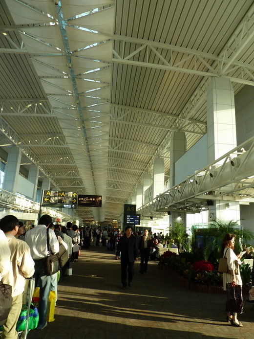 廣州新白雲機場由於進行亞運安檢之故,等著搭機的旅客大排長龍,官方深怕會有任何影響亞運安全的人事物矇混出入境,大大提高機場安檢的層級,事先不清楚到底會如何拖延的我們,在飛機起飛前兩個小時抵達機場,還大大鬆了口氣,慶幸沒有遲到。