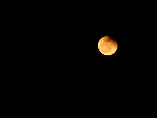 昨晚下班時,我乍見那抹呈現橘紅色的月,震攝之餘,路旁成了我的攝影棚。