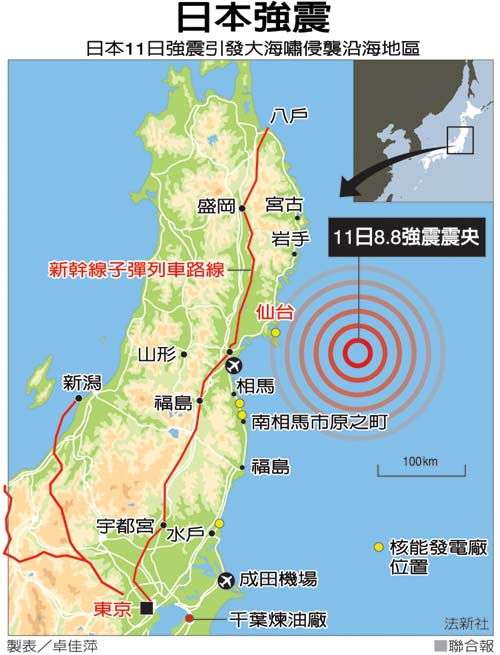 日本東北8.8強震 海嘯席捲宮城、福島: