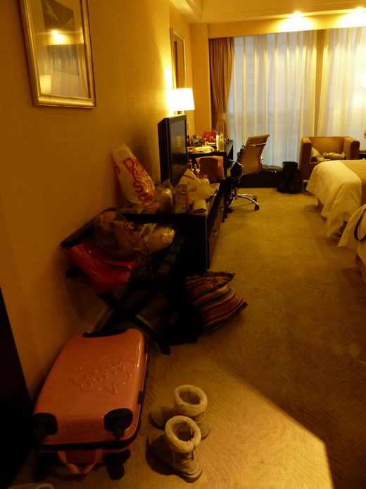 外頭氣溫約近零度,頂多兩、三度,房間裡的空調暖氣卻有二十二度,內外溫差一下子就差了二十度,幸好我們沒有忽裡忽外來去,不然這麼大的溫度落差多進出個幾趟恐怕就受風寒了。
