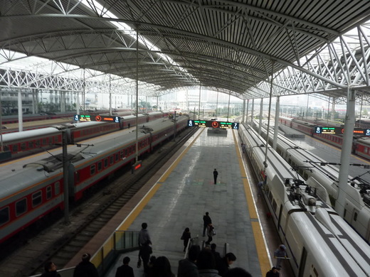 我一直以為那種挑高式的月台只有在電影裡才看得到,那應該是歐美國家才會有的形式,沒想到上海車站就有這樣的格局,頓時我還以為自己人在電影裡,身後趕著上車的人聲鼎沸才讓我回神,原來這是在上海。