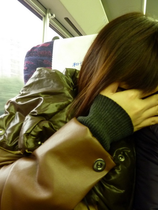 車廂裡傳來廣播,蘇州站即將抵達,我輕輕喚起些微瞇過去的可人兒,她帶點迷糊地把圍巾圍起來,溫暖的車廂即將說掰掰,我們要再次回到冷酷空氣中了。