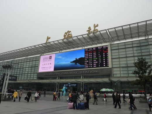 買好車票,準備搭車去。在我的印象裡,月台候車沒什麼大不了,就是一群人站在月台等列車進站後再依序上車;可是,這一套在上海一點都不管用,我忘了光站體本身已經那麼龐大,月台候車肯定不會是我以為的那樣。