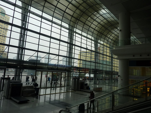 當我牽著U的手、問了車站外頭的公安而終於找到月台方向,才進入月台候車室大廳,我已然傻眼,以那樣的建築規模,如果有人跟我說這裡是機場恐怕我也會相信,挑高的大廳入口十分氣派,當我拿出相機拍照時,她在旁邊有些不好意思,因為就我這麼一位姥姥走進大觀園,其他人趕車的趕車、奔跑的奔跑、悠哉的悠哉,一看就知道我是鄉下來的土包子。