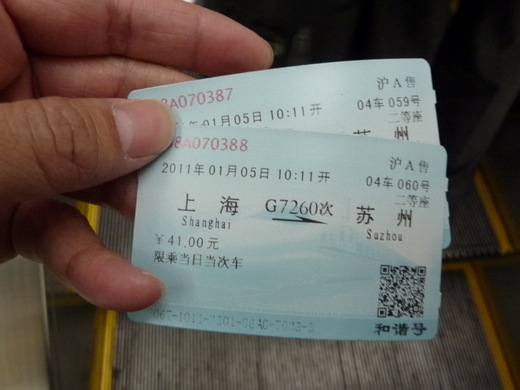 這動車票可比我想像便宜了,從上海到蘇州單程票單人要價四十一元人民幣,折合新台幣約一百八十元左右,單趟距離約五十幾公里、車程時間半小時,跟台灣高鐵相比,大陸的動車組票價的性價比確實高了不少。