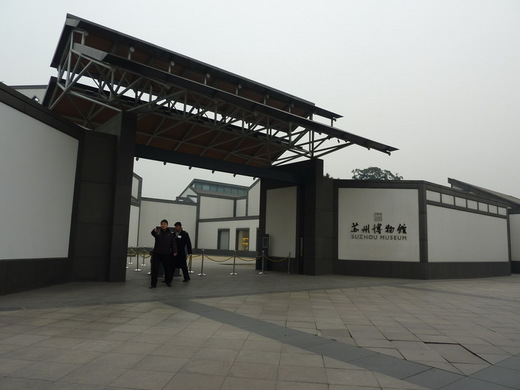 「蘇州博物館」進入視線時,我和走在前頭的她互看一眼,決定當做沒看到直接走過去,主因是門口的警衛看起來很難搞,那種冰冷的氣氛直接澆熄我們的熱情,外頭已經夠冷了,不需要再去貼人家冷屁股。