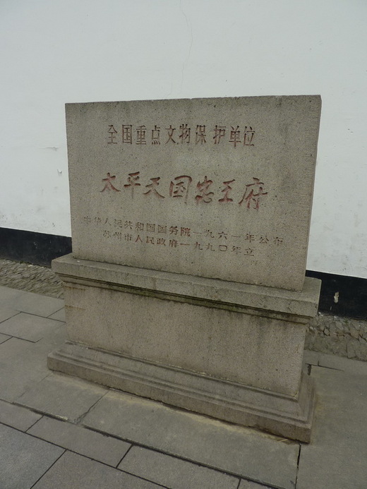 來到一棟建築門口,門上橫匾寫著「忠王府」,她抬頭看了看,回頭問我這是什麼的忠王府?我緩然道,是太平天國時期的忠王府,她滿臉訝異,以為我這麼博學多聞,才要向我傾訴仰慕之情,我立刻自己招了,不是我神,而是門口正對面牆邊就立著一塊石碑,上頭寫的很清楚:「全國重點文物保護單位.太平天國忠王府」。