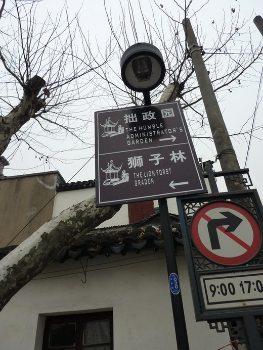 從拙政園到獅子林相當近,只要五分鐘路程,天氣很冷,我們還算走得慢了,沿途黃牛先生與我們有一句沒一句地聊問,想必他也很無聊,每天帶遊客這邊走、那邊湊的,還不是為了混口飯吃。