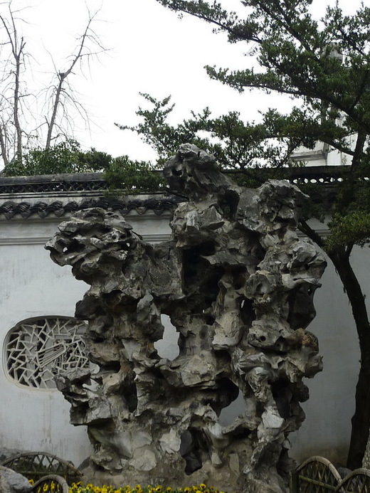我們走到小方廳,又撞見另一貴婦團吱吱喳喳地在前方嚷嚷拍照,不禁皺起眉頭,在這兒,我們見識到中國人大聲公(應該說大聲婆)的威力,原本安靜的獅子林有了這群貴客,頓時熱鬧起來;我們本來要直接繞過遠離塵囂,卻突然聽見貴婦團導遊解說這兒就是獅子林的重要景點--九獅峰,甚至可說,現在獅子林之所以稱為獅子林,這九獅峰功不可沒。
