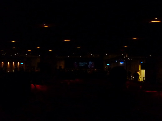 七點十五分,我們進場,買的是最低價格的票、坐的位置當然也就是最後頭,第三十八排的座位,說正格的,從現場帶位員引導我們一路往後方走去時,我們就有點咋舌,坐那麼後面是要看什麼啊?