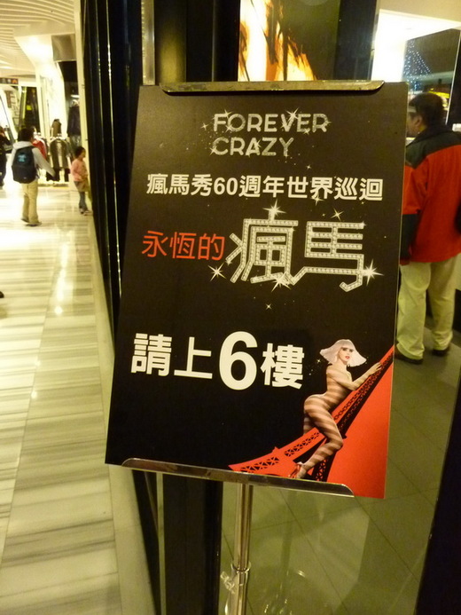 「瘋馬秀」是晚上七點半開始,我下午四點多來到台北,今天看這場秀的搭檔還是老友小影,前兩年我和她一起去看了「極限震撼」,對於這種所謂國外知名演出來到台灣的表演其實還蠻有興趣,上回我錯過了「太陽劇團」,這次的「瘋馬秀」還是想把握一下。