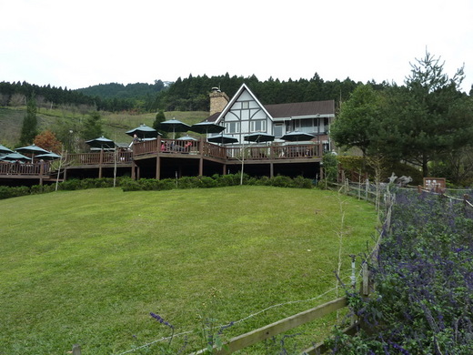 比起「山上人家」主館,森林咖啡館這邊的氣氛較得我心,高聳攀天的林木群營造出森林風味,若能在這裡來杯咖啡、看看遠山,肯定是悠閒自在的下午茶體驗,可惜因非假日,咖啡館沒開,在這裡喝杯咖啡的想法無緣實現,只好拍拍照離開。