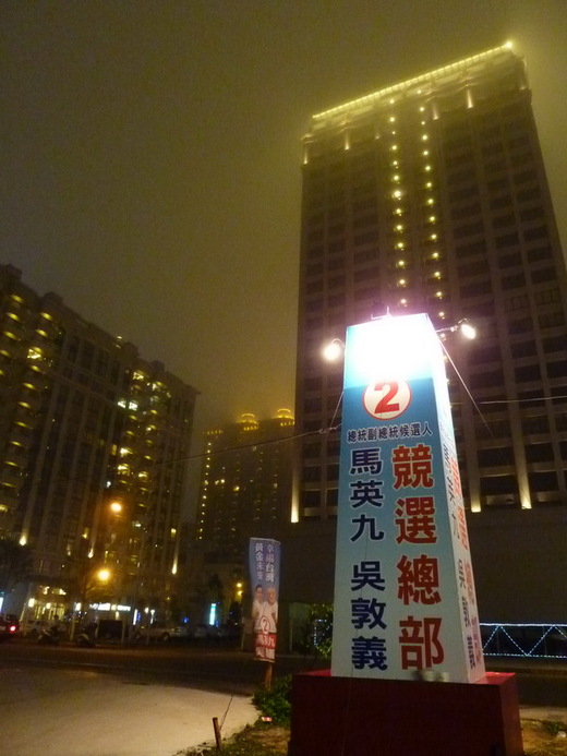 我向來是個很懶的選民,雖然心中有特定支持對象,但造勢或動員都與我沾不上邊,因為我受不了那種人群擠爆的場合,這次之所以會來競選總部看看,除了想感受一下現場「旗海飄揚」的熱情,也想看看勝選之夜會有什麼樣的激動。