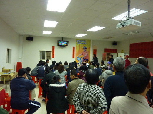 不過,桃園到底不是台北、分區總部畢竟不是全國競選總部,我和老爸來到桃園北區總部時,來到這裡關心選情的民眾還不到百人,倒是隔壁已經順利連任的立法委員楊麗環競選總部開始放起勝選煙火,而且愈放愈囂張。XD