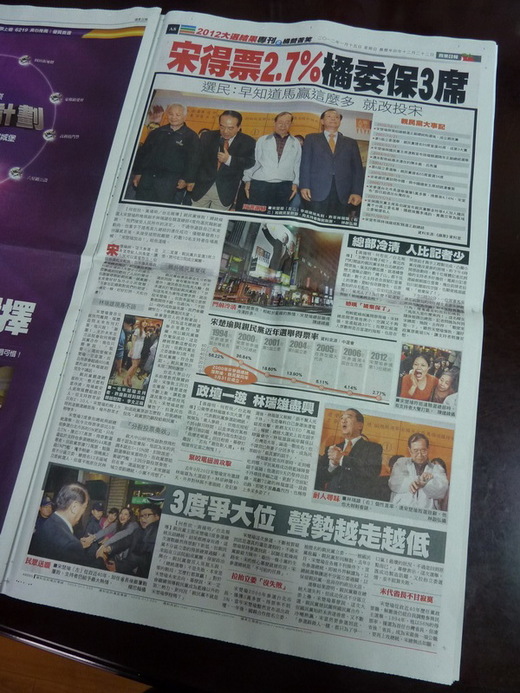 老媽本來是挺宋的泛藍派,她認為馬政府這四年來雖不能說做得不好,但有些事情的處理讓她頗為失望,覺得只有宋楚瑜才能讓台灣變得更好;當初宋林配在進行連署時,老媽也去領了連署書(雖然後來沒真的繳交連署),她認為,要做自己認為對的事情,不管我和老爸怎麼詢問與分析,她就是認為要給宋楚瑜一張票。