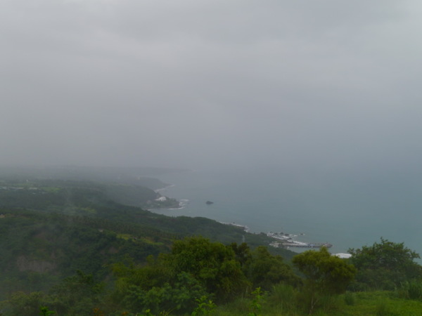 放下行李,我趕緊揣著相機來到民宿大客廳前的平台,雖然仍飄細雨,都蘭灣的曼妙依然映入眼簾,我感到可惜,大老遠從桃園跑來台東可不是為了碰到下雨的,偏偏小人無法支配老天,只能順著這般雨霧先留下一點紀錄。