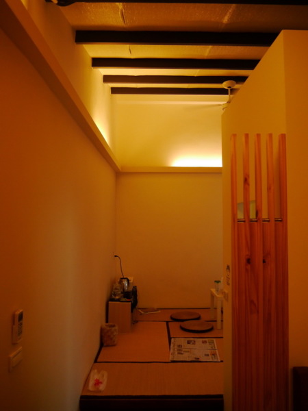 和洋式套房除了榻榻米這一塊,另外有張大床在內間,我跟老媽說,彈簧床妳睡、榻榻米我睡就好,老媽雖覺得彈簧床的彈簧有點突起,可不管怎樣,彈簧床都比榻榻米好睡,累壞的老媽躺床便瞇,搭著屋簷雨聲,室內有種不安靜的寧靜。