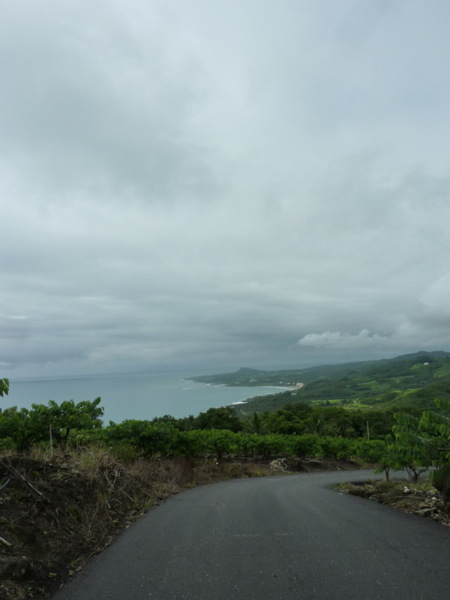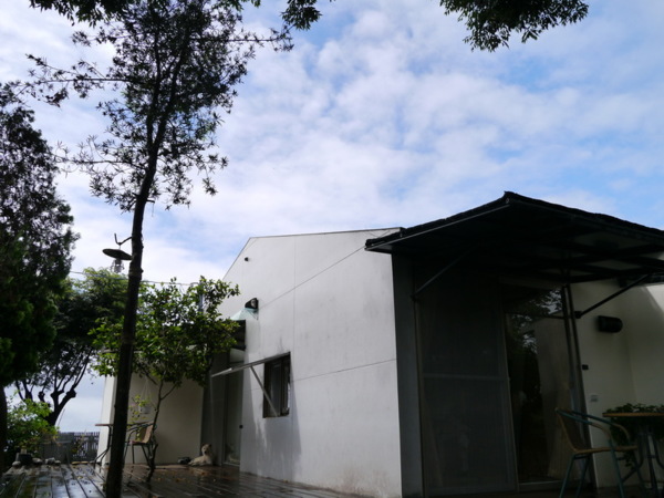 雖然我和老媽正準備出門,但難得看見藍天,我們還是趕緊揣起相機到前院平台拍照,我就想拍到如民宿網頁那般的藍天白雲,可惜,天藍只有一下下,當我們驅車下山時,烏雲再度佔據了寬廣的台東天空,遠方海面上的綠島再度模糊起來。